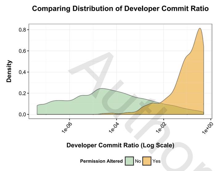Android applications rely on a permission-based model to carry out core functionality. Appropriate permission usage is imperative for ensuring device security and protecting the user’s desired privacy levels. But who is making the important decisions of which permissions the app should request? Are they experienced developers with the appropriate project knowledge to make such important decisions, or are these crucial choices being made by those with relatively minor amounts of contributions to the project? When are these permission-related decisions being made in the app’s development life cycle? We examined 1,402 Android version control repositories containing over 331,318 commits including 18,751 AndroidManifest.xml versions to better understand when, why, and who is adding permissions to apps. We found that (I) developers with more experience are more likely to make permission-based changes (II) permissions are typically added earlier in apps’ commit lifetime, but their removal is more sustained throughout the commit lifetime (III) developers reverting permission-based changes are typically more experienced than developers who initially made the change being reverted